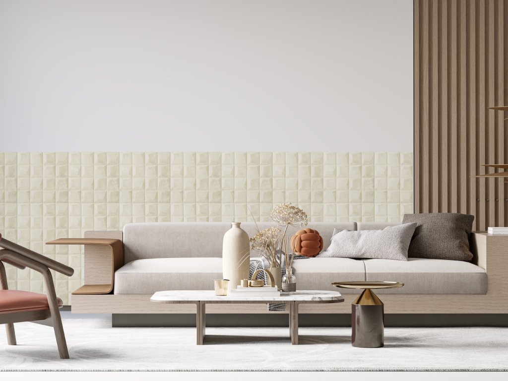3D samolepicí stěnové čtverce béžové kostky samet