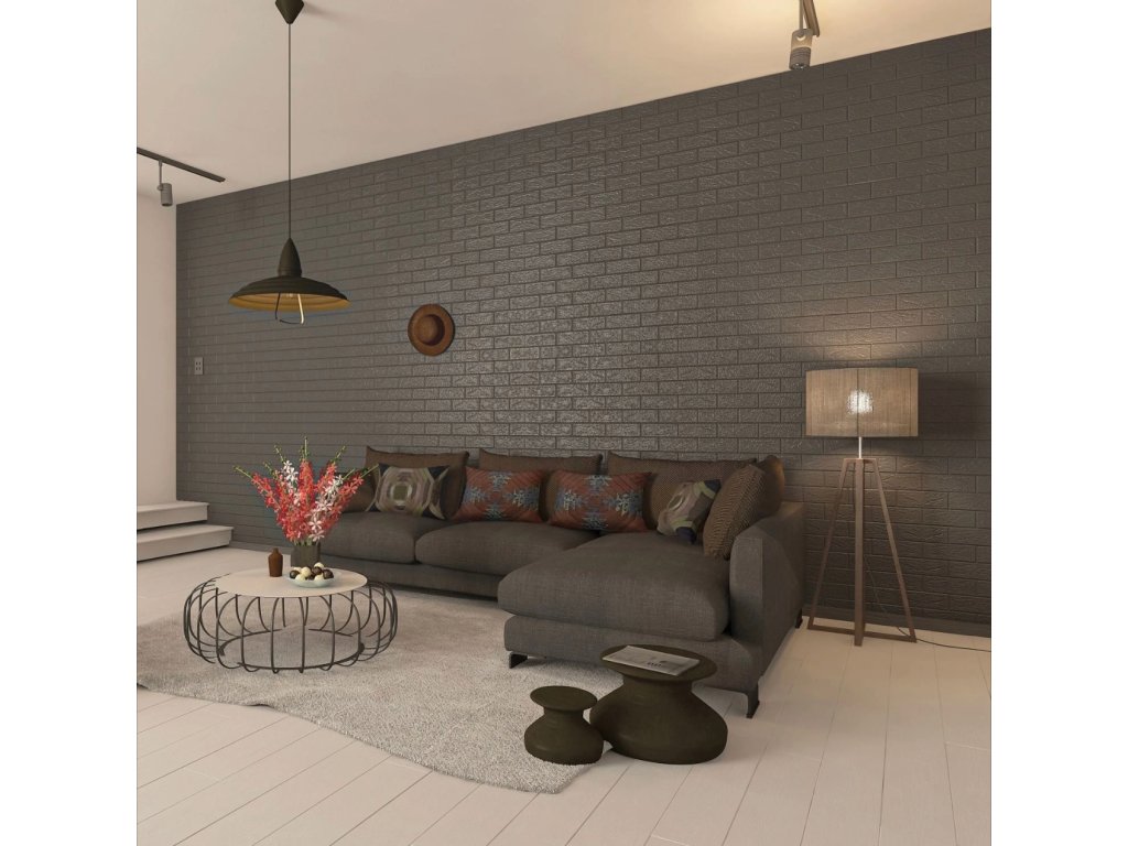 Pěnový 3D samolepicí obklad šedá cihla PB3502, 70 x 77 cm. Panel s velmi reálným vzhledem. Vhodný způsob, jak moderně a stylově vyzdobit každý interiér.