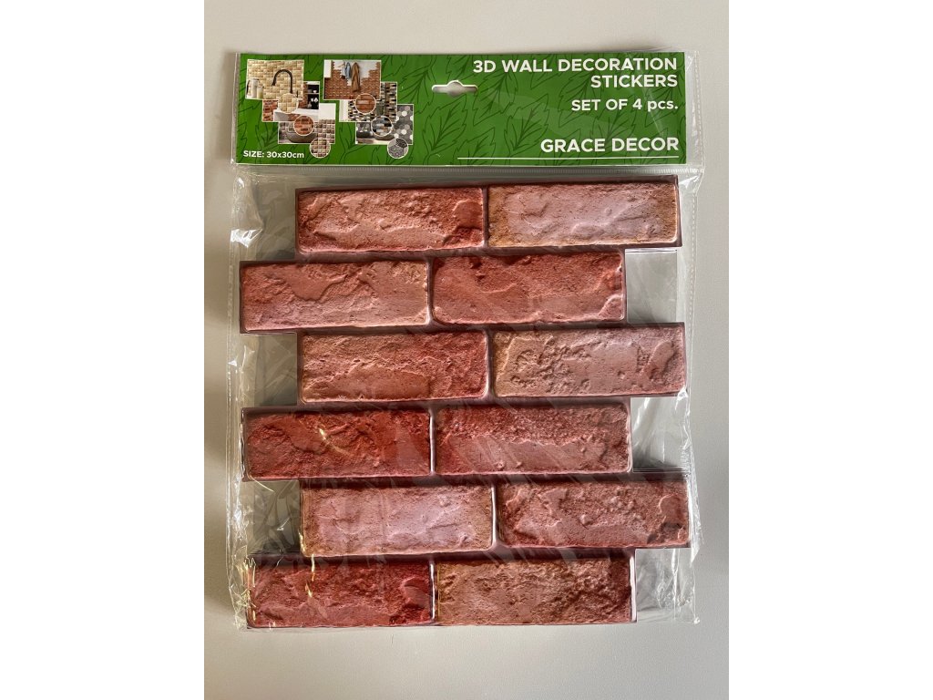 Samolepicí 3D dekorace, červená cihla, 30 x 30 cm