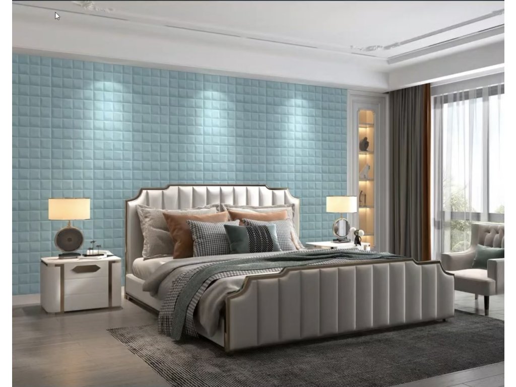 3D samolepicí stěnový panel do ložnice mint imitace kůže