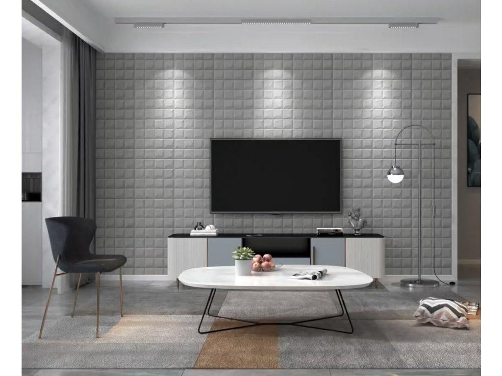 Samolepicí 3D stěnový panel do obýváku koženka šedá