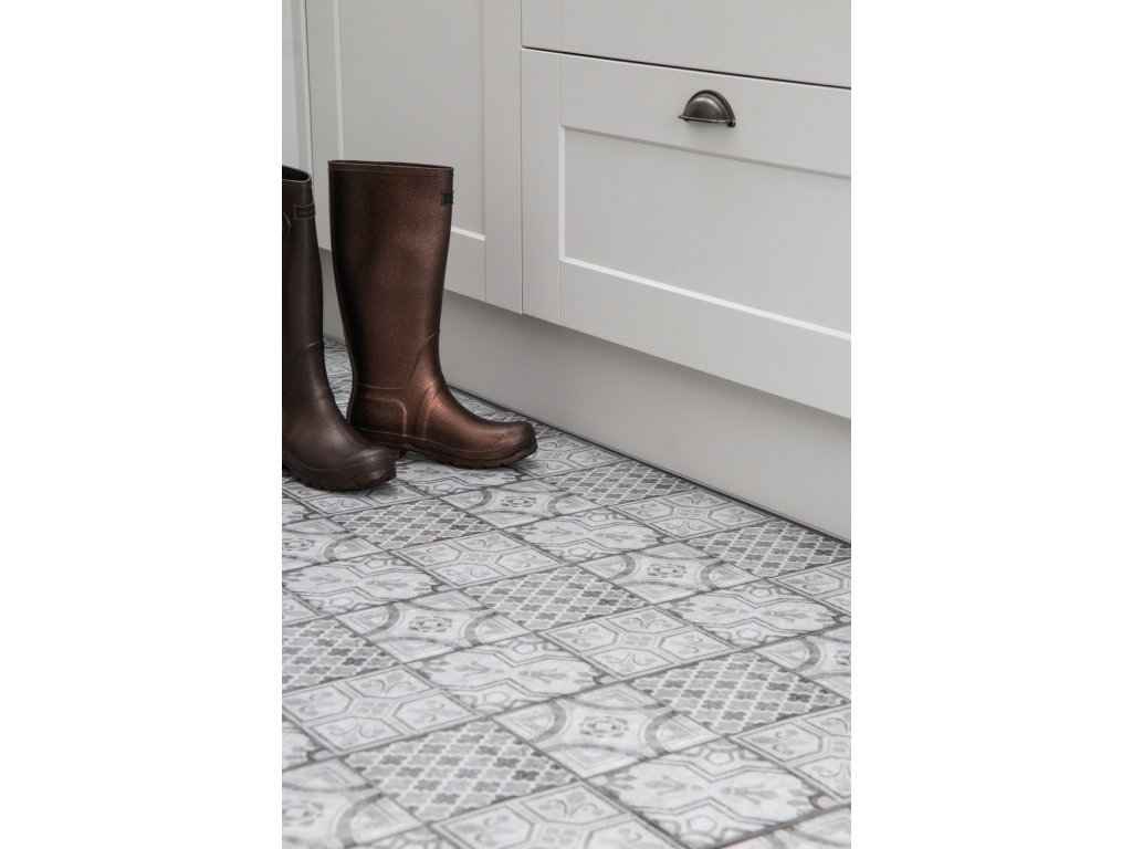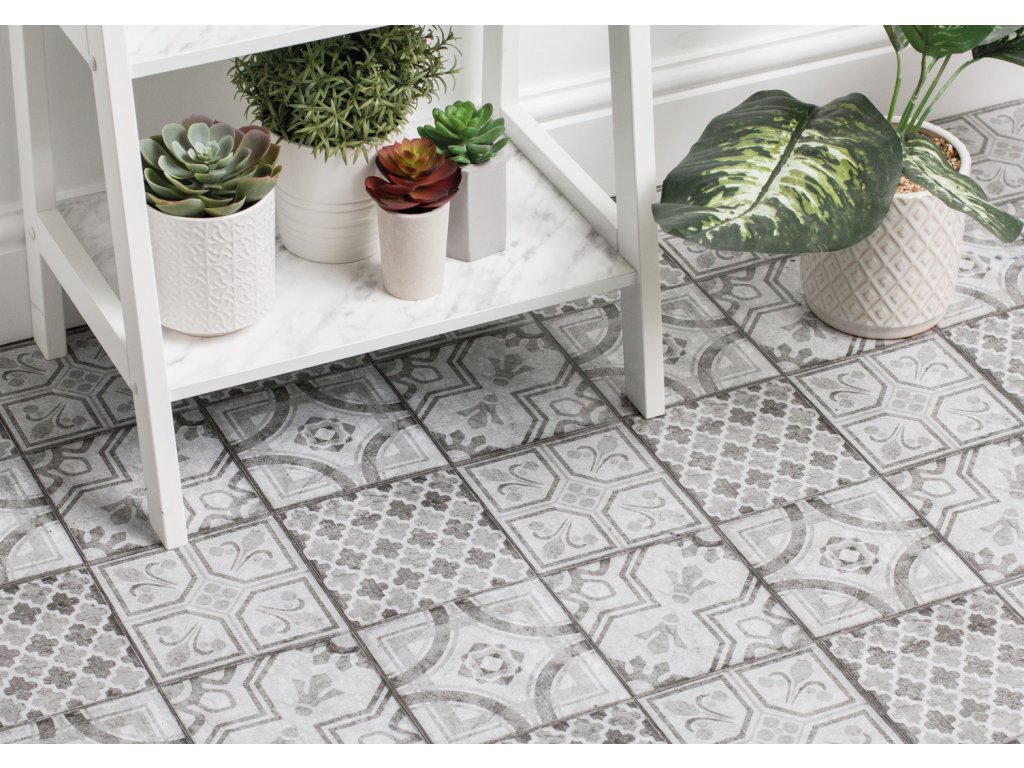 Vhodné také do koupelen a na wc. Doporučujeme okraje čtverců kolem celé místnosti zasilikonovat bílým nebo průhledným silikonem.